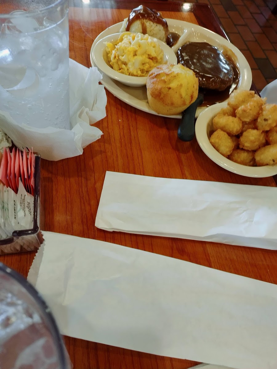 Passing thru on a girl's trip. Stopped to have lunch. The place was packed, and we had to wait, but they were getting people in and out, so we didn't have to wait long. The restrooms were decent. Their menu has a lot of different options to choose from, which was exciting but hard to choose one thing. Their fried green tomatoes were delicious. I got the grilled chicken deluxe. Very fulfilling, and the fries were still steaming when they came to the table. Overall experience was great.