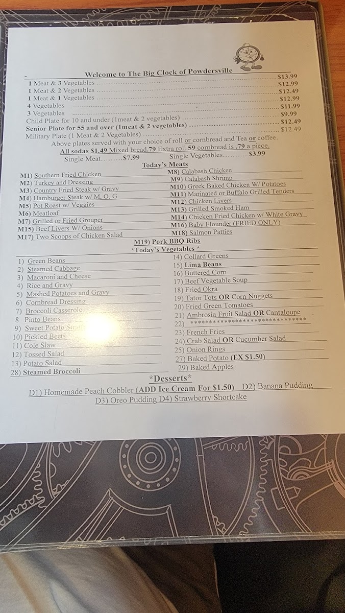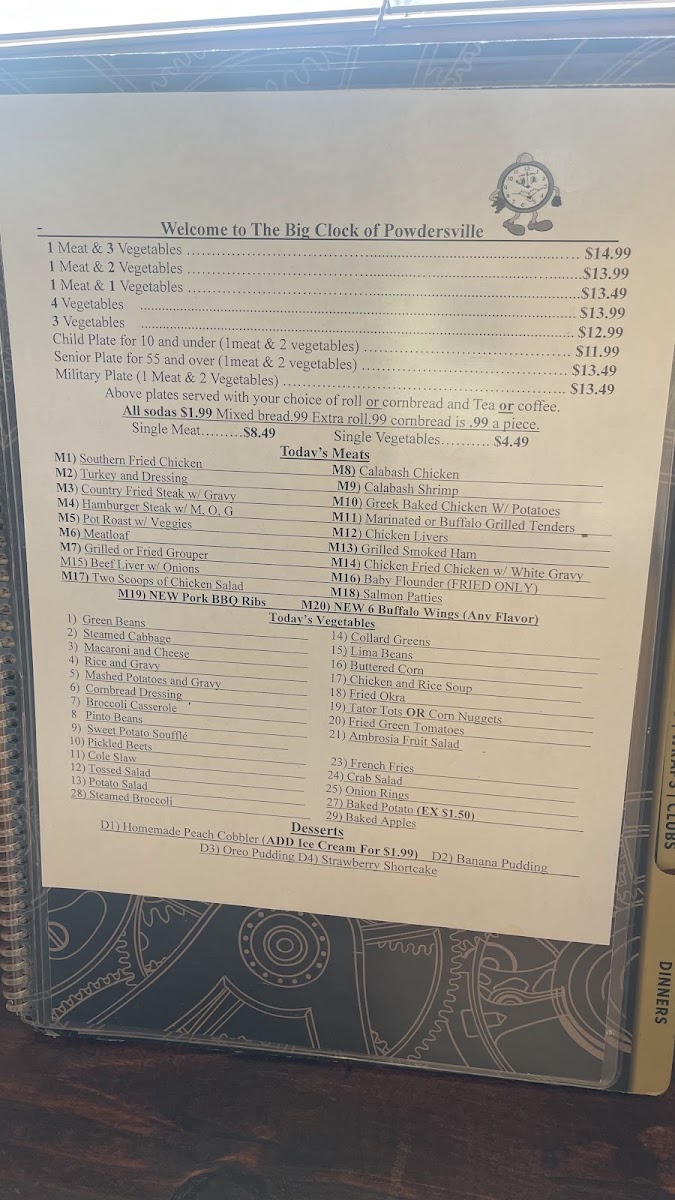 The Big Clock of Powdersville offers a straightforward, comforting menu that blends classic Southern staples with familiar American favorites. Whether you're stopping by for a hearty breakfast, a casual lunch, or a relaxed dinner, the menu reflects a welcoming café atmosphere where simple, home-style cooking takes center stage.